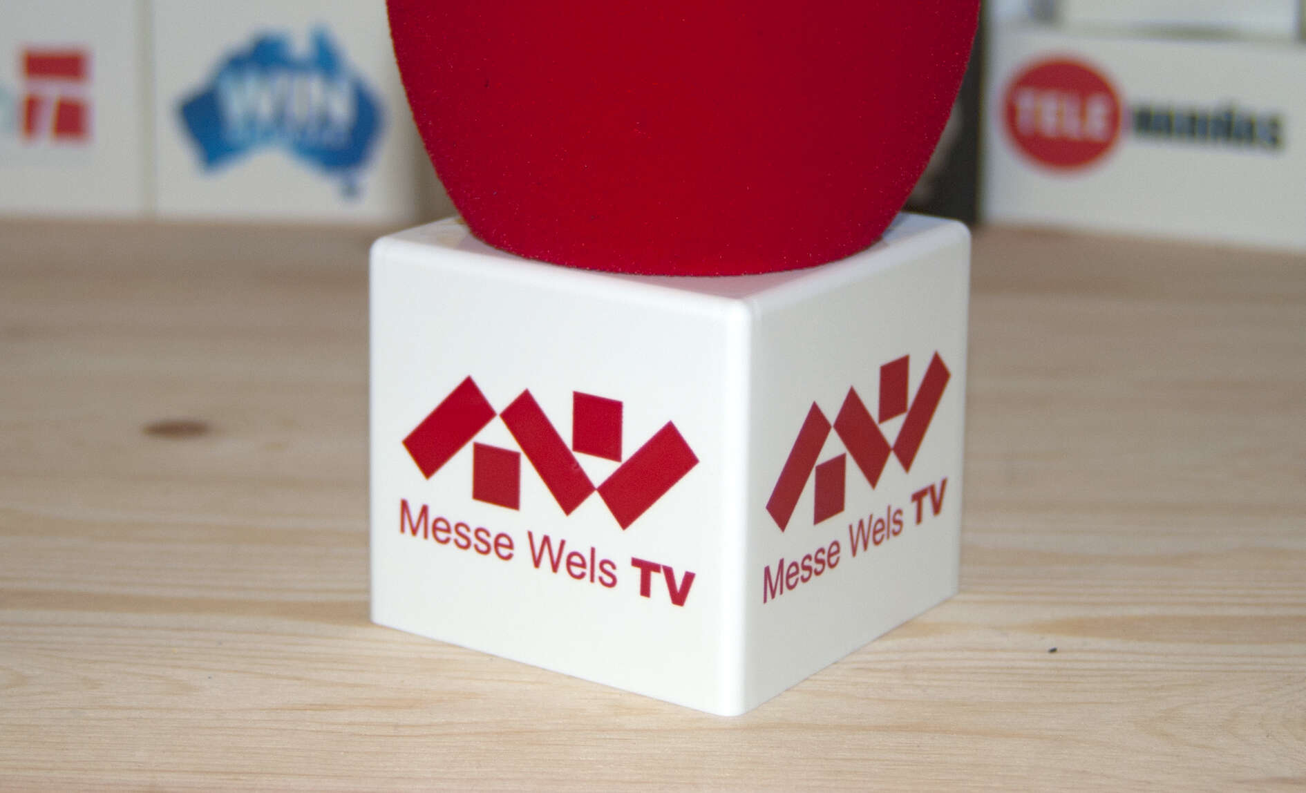 Corporate-Mikrowürfel für das Unternehmen Messe Wels mit roten Windschutzs.